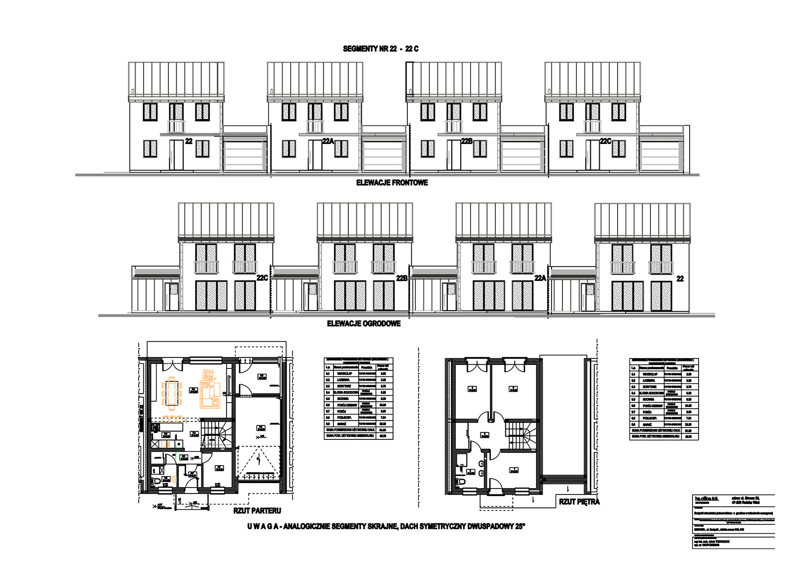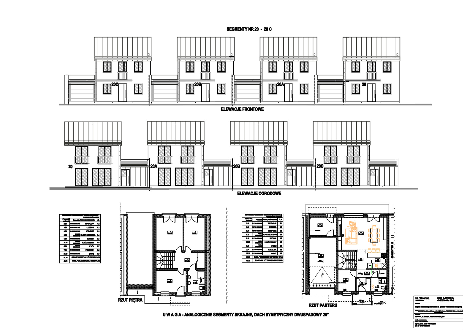 - Dom w zabudowie szeregowej z garażem (parterowy z poddaszem użytkowym i strychem).